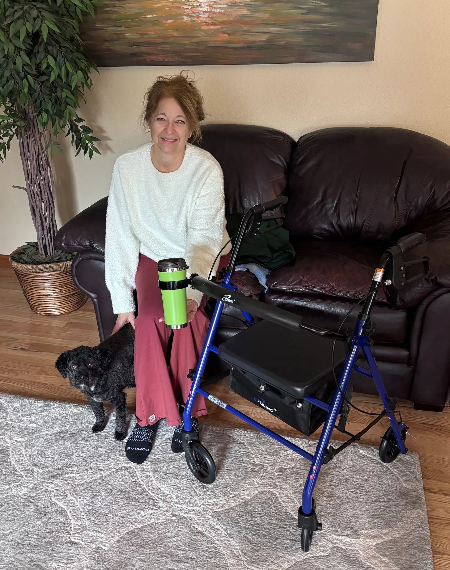 - A walker with wheels is necessary for at least 2 weeks (my husband added a coffee cup holder to mine). I used my walker closer to 3 weeks and a cane for a few weeks afterwards