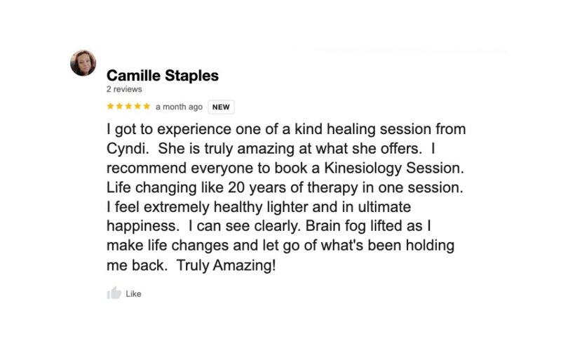 I feel more balanced , grounded and clear after my session with Cyndi. I also feel lighter, brighter and much more centered into my true self. I highly recommend working with Cyndi.