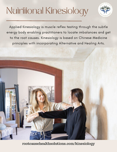 Applied Kinesiology is muscle reflex testing through the subtle energy body enabling practitioners to locate imbalances and get to the root causes. Kinesiology is based on Chinese Medicine Principles while incorporating Alternative and Healing Arts.